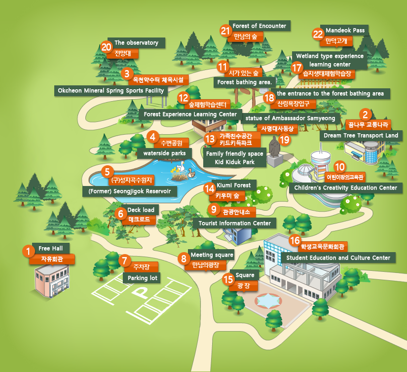 습지형태체험학습장 · 위치는 산림욕장 시가 있는 숲 맞은편에 있습니다.
