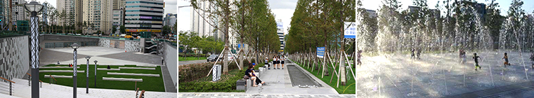 | 수경시설 | 고지도 바닥분수(600㎡), 실개천(L=130m, B=2m) |